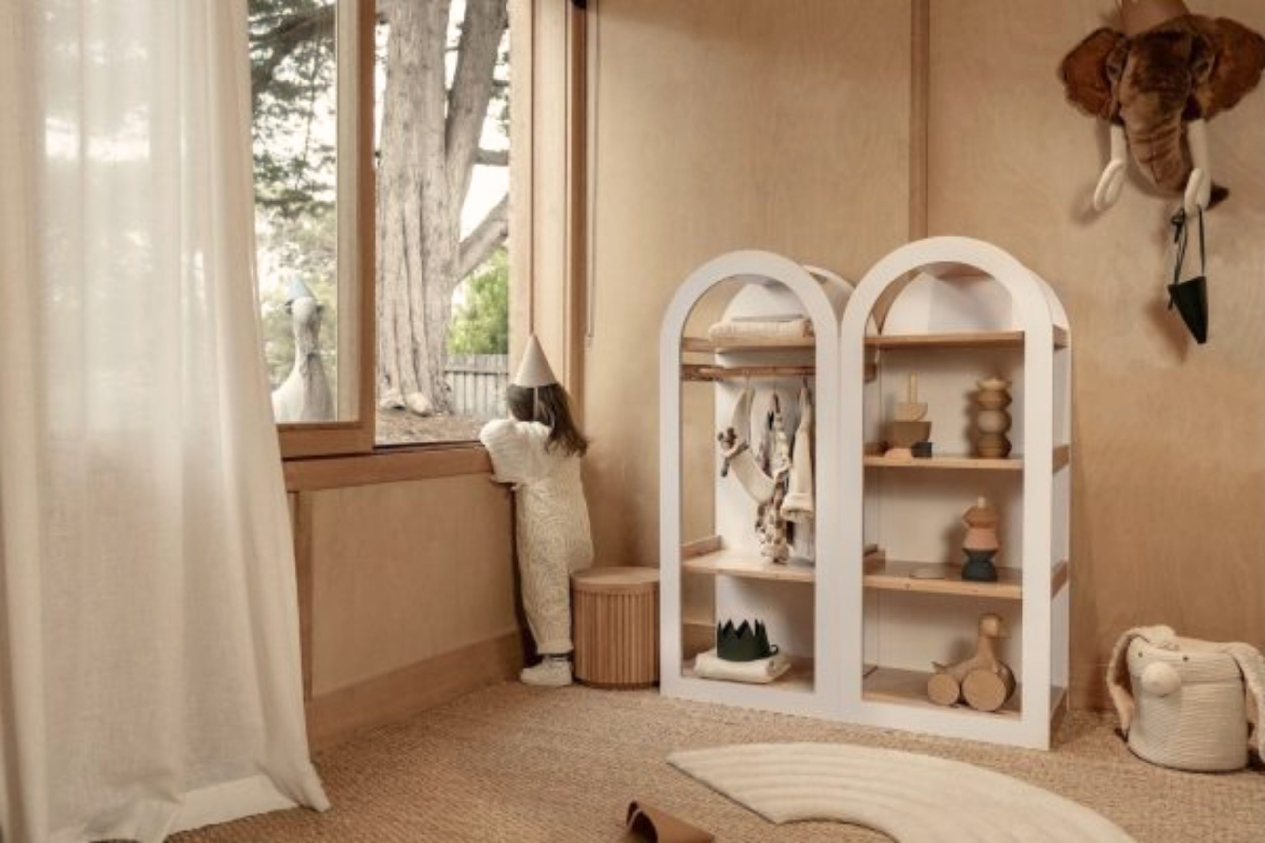 The Cove Arched Shelf is designed to seamlessly blend white and natural tones, it brings a charming touch to any space.