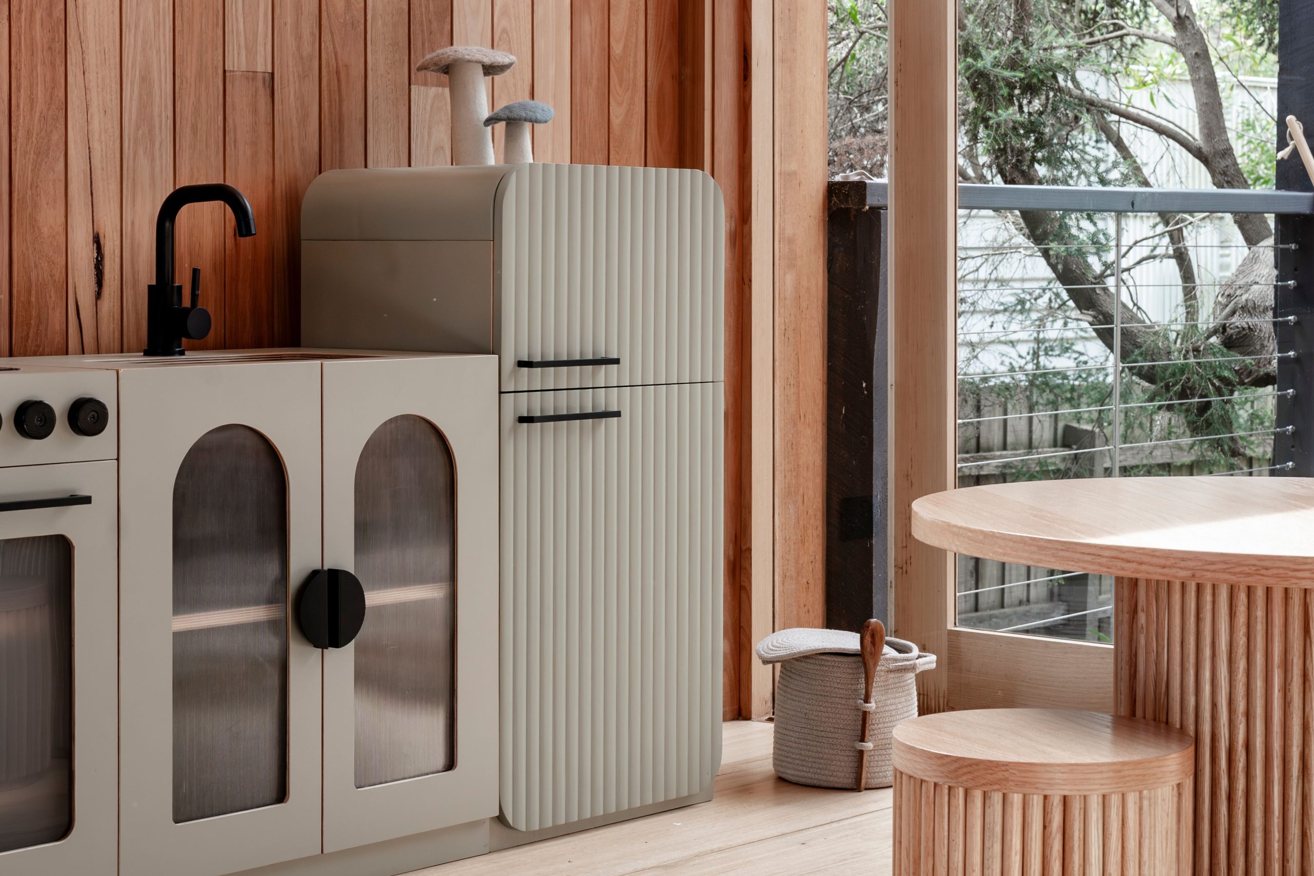 Offering ample storage for play food essentials, our Sage Fluted Fridge is the perfect addition to spark the culinary creativity of budding young chefs everywhere.