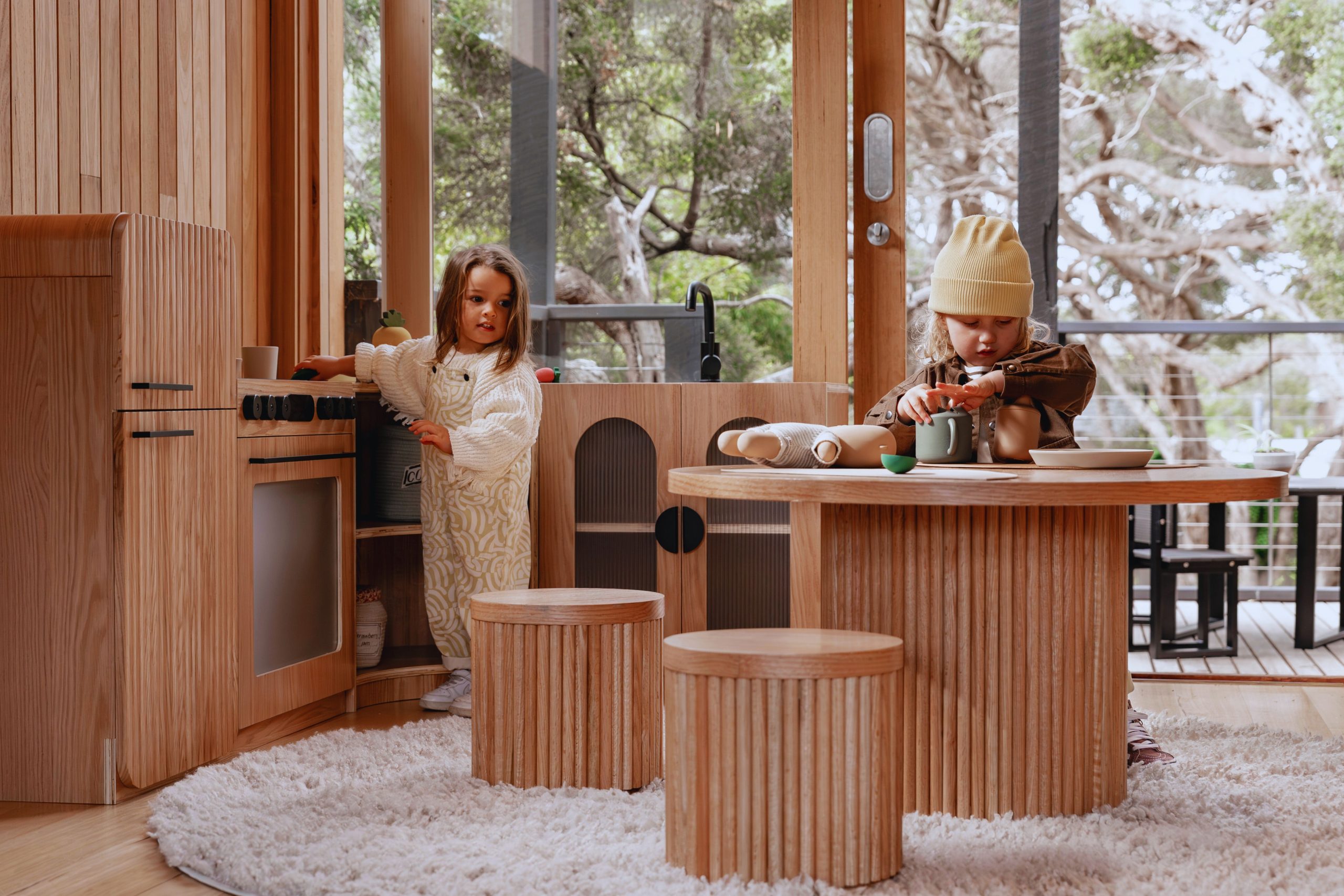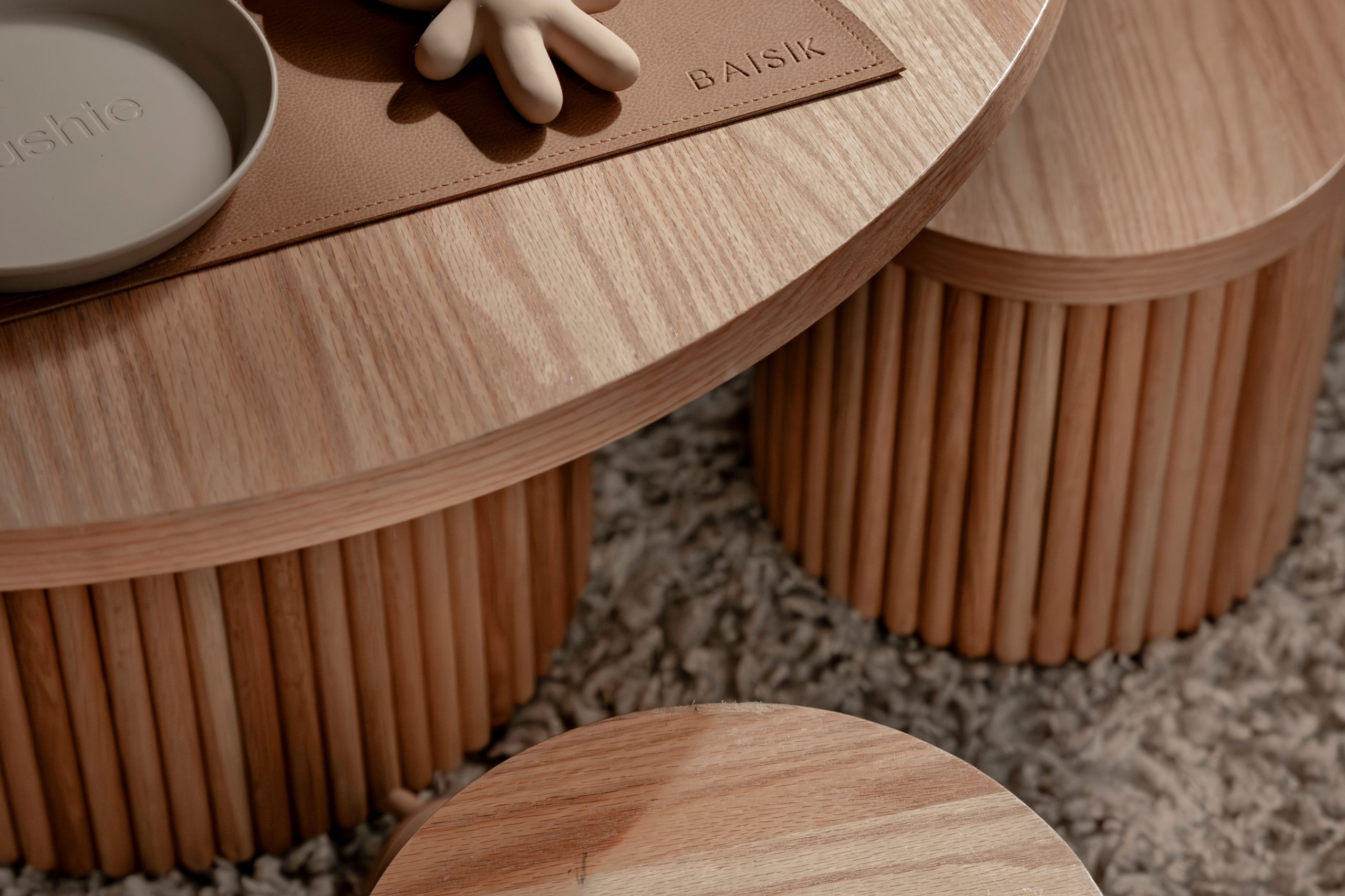 This elegant fluting not only adds charm but also accentuates the timber’s natural allure, showcasing every intricate grain and delightful shade of light brown.