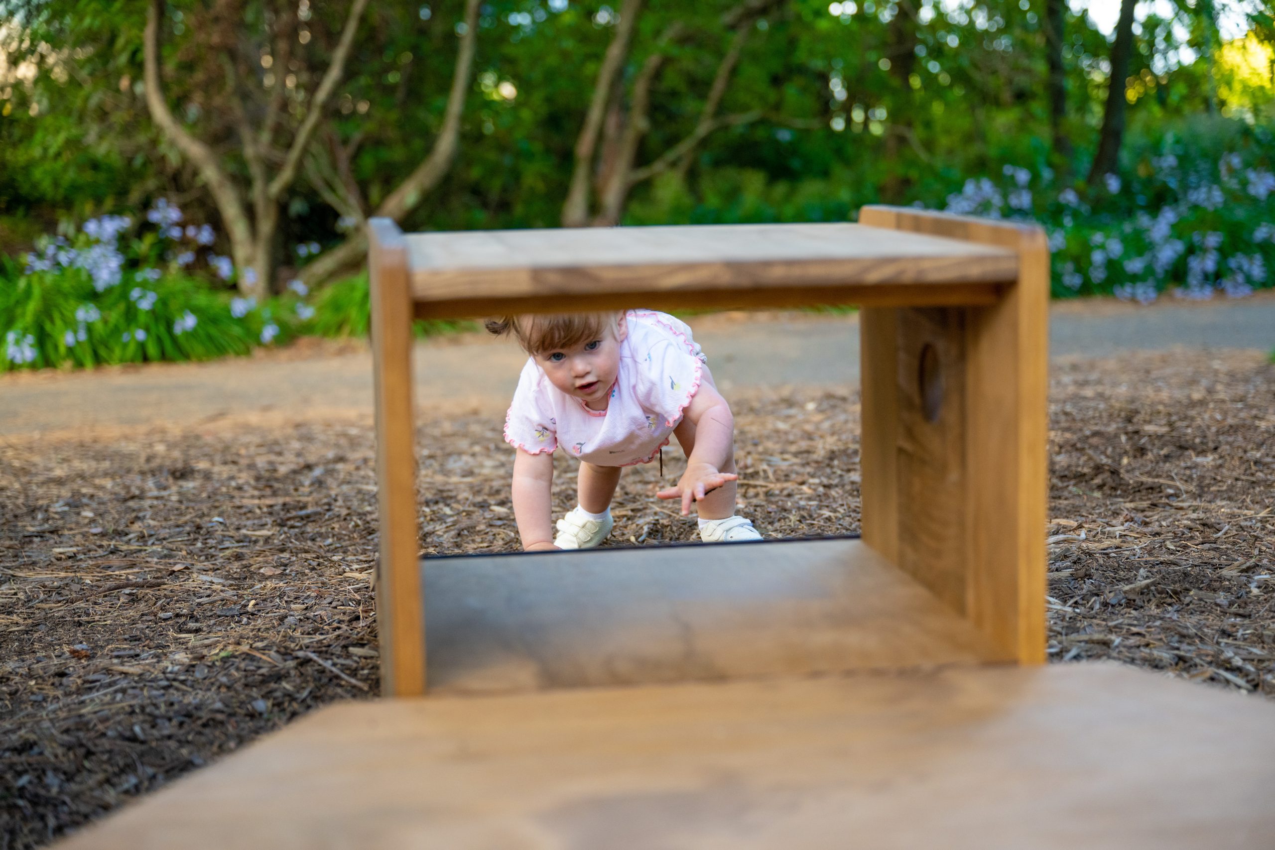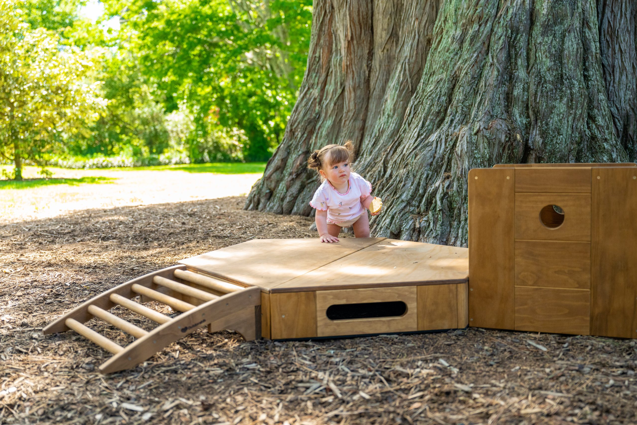 Our play equipment is crafted from Accoya, a highly durable and sustainable wood species. As a natural material, it may develop small hairline splits or ‘checks’ as it adjusts to outdoor conditions. This is a normal part of the timber’s lifecycle and does not affect its strength or longevity.
