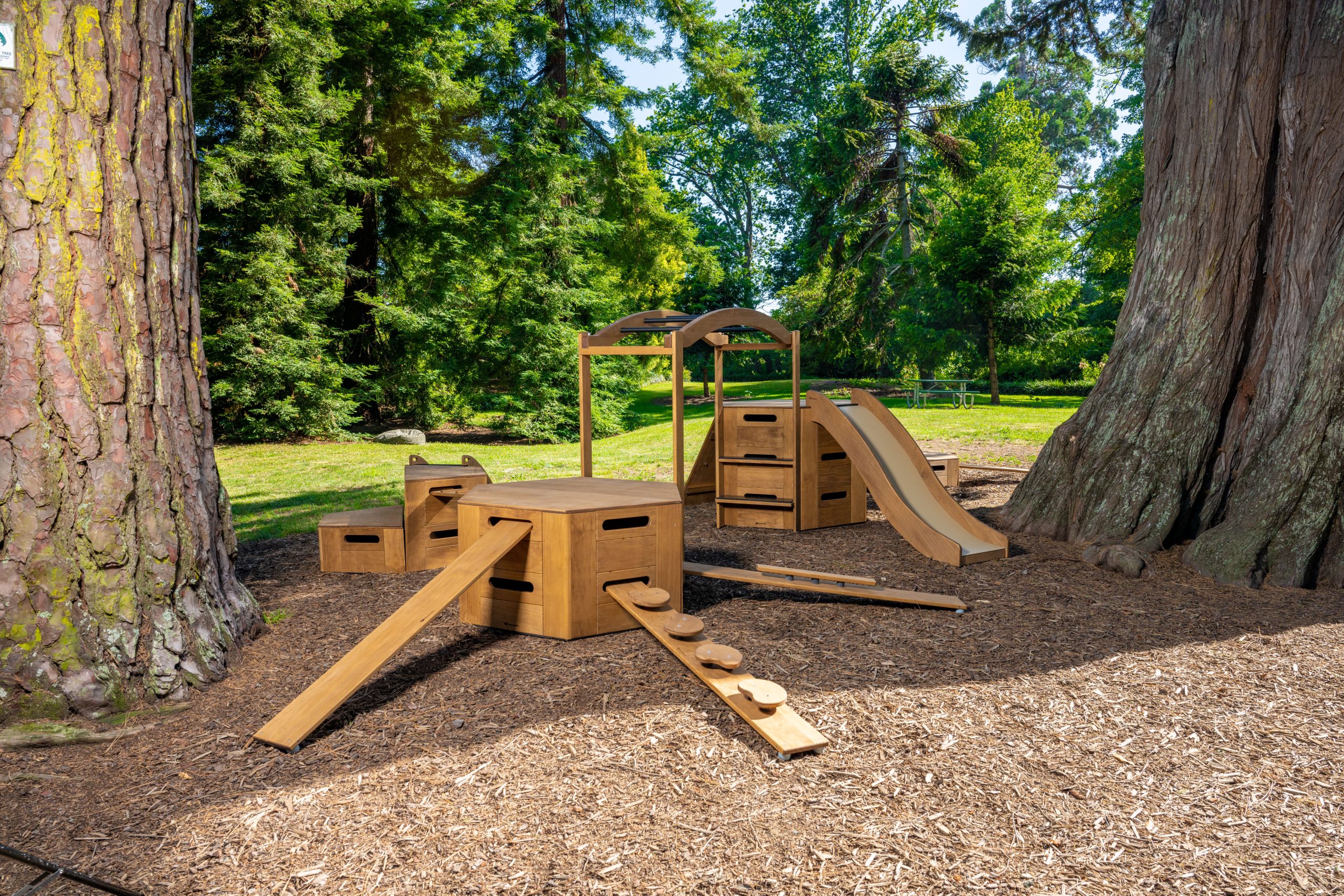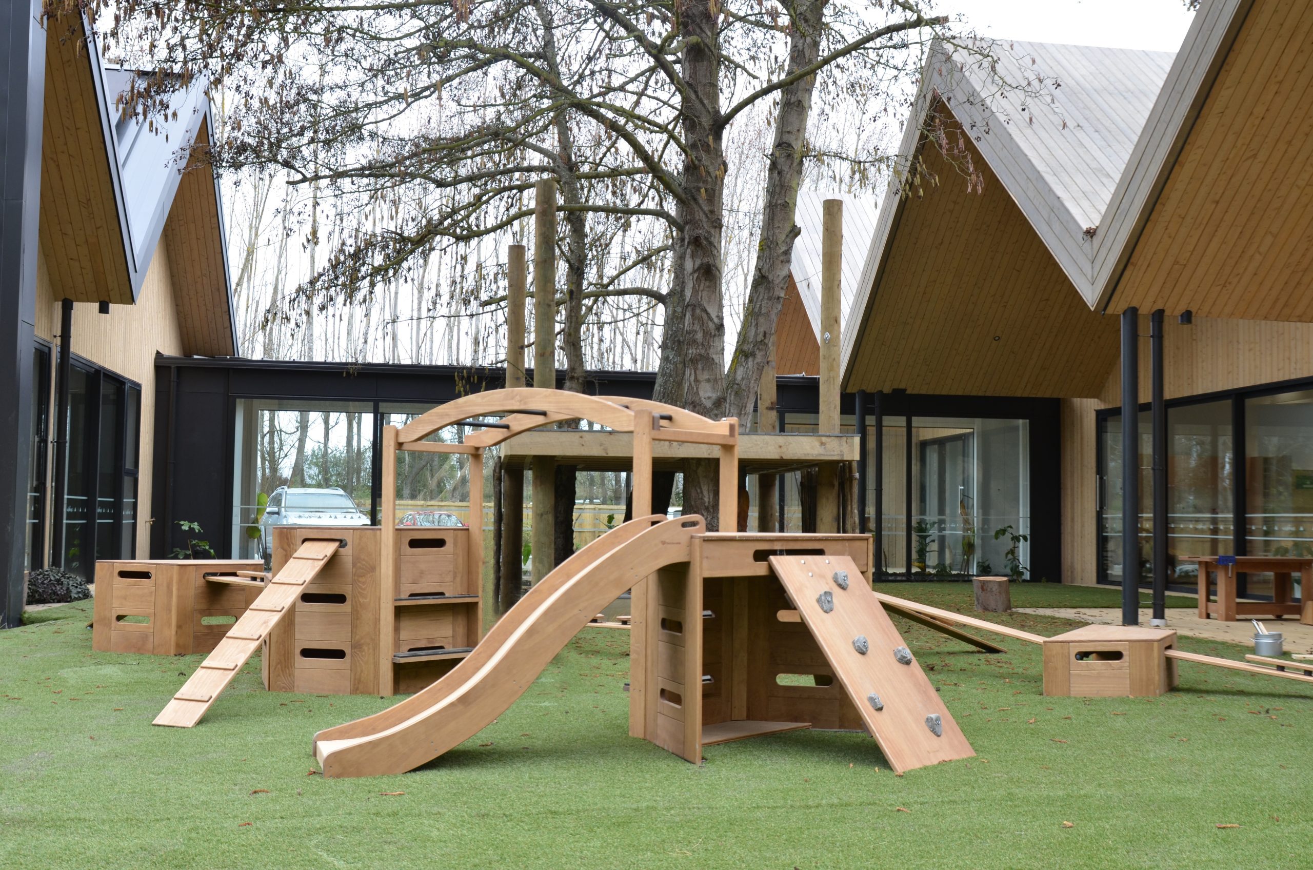 Our play equipment is crafted from Accoya, a highly durable and sustainable wood species. As a natural material, it may develop small hairline splits or ‘checks’ as it adjusts to outdoor conditions. This is a normal part of the timber’s lifecycle and does not affect its strength or longevity.
