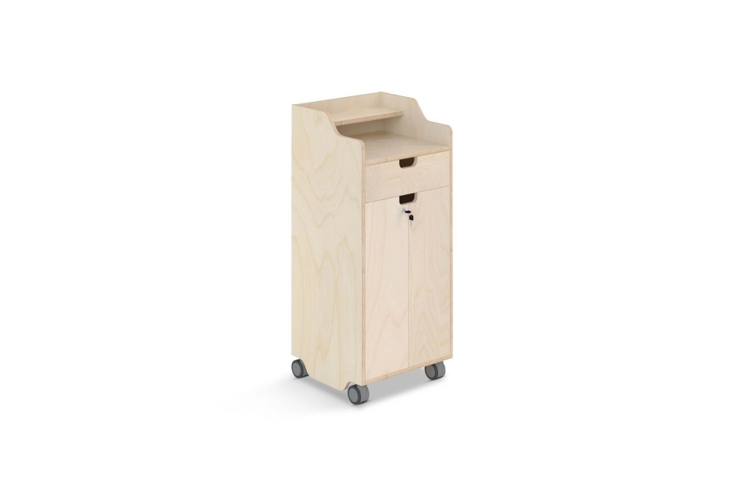 Features a drawer and lockable cupboard storage. The perfect secure teachers caddy.