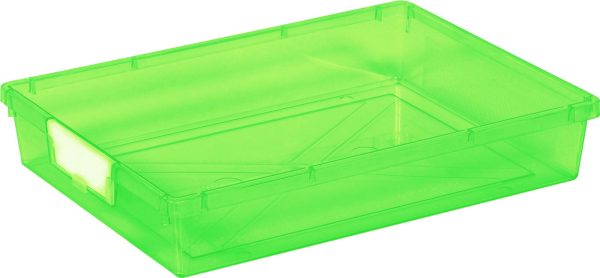High-quality school and early education storage tote tray. High Impact Polystyrene (HIPS) storage container designed to fit neatly into our tray runner storage units. Available in a range of pastel colours: Oasis Blue, Lime Green, Autumn Orange, Sunshine Yellow and ‘True’ Clear. True Clear lids are available.