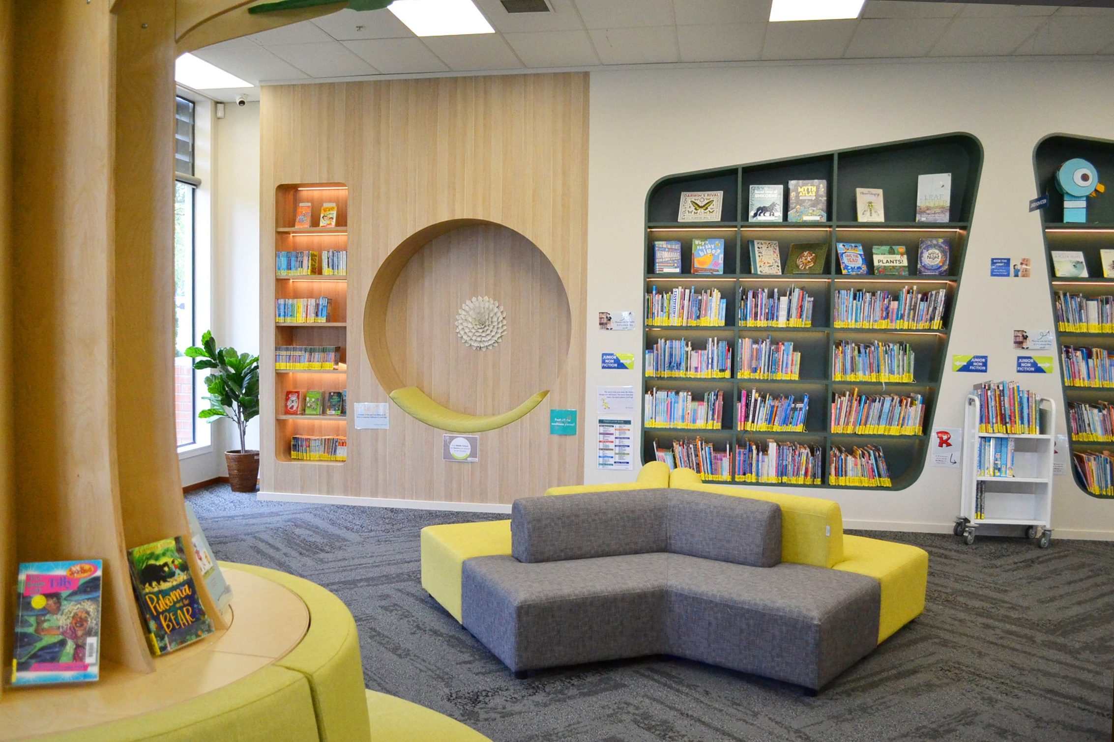 To complement the natural timber tones, the school chose Waihi and Waitomo Vinyl for their soft furnishings, including the coolest built-in seat upholstered in Waihi to tie the space together. Creating comfortable nooks and spaces for students to relax, study and enjoy reading.