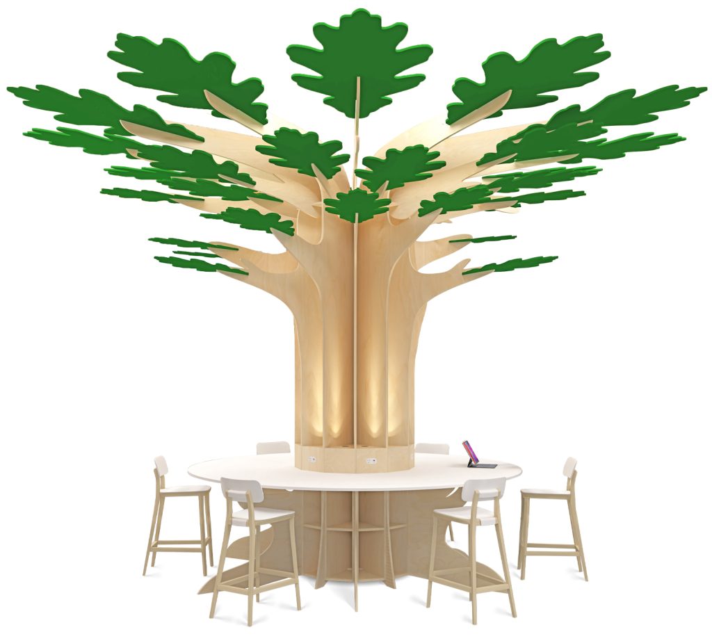 The statement piece of the range, Treedom 3 transforms open atriums or learning hubs into inspiring, functional spaces. With expanded canopy reach, integrated lighting and table options, it delivers both sound control and visual impact. Designed for large-scale projects that need to wow and perform.