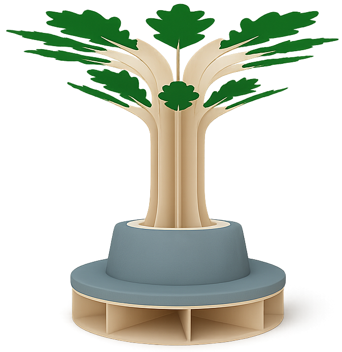 A larger and more immersive version of the Acoustic Learning Tree, this model combines biophilic design and acoustic performance. Featuring layered leaf canopies and optional bench seating. Perfect for open-plan learning environments and modern educational design.